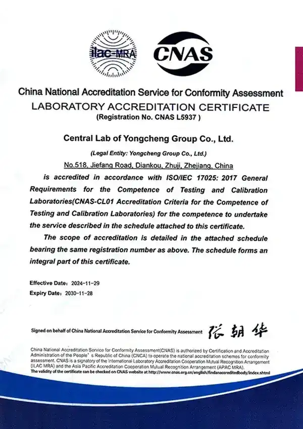 Yongcheng foi reconhecida como uma das Empresas Especializadas e Inovadoras da província de Zhejiang, um título concedido a empresas com forte expertise técnica, capacidade de inovação e influência no mercado em setores de nicho.
